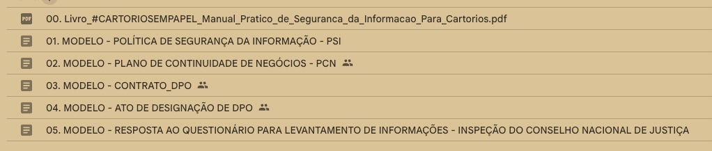 Não se trata de exemplos genéricos. São documentos organizados para adaptação imediata à realidade do seu Cartório, alinhados à LGPD, aos Provimentos do CNJ e aos Códigos de Normas.